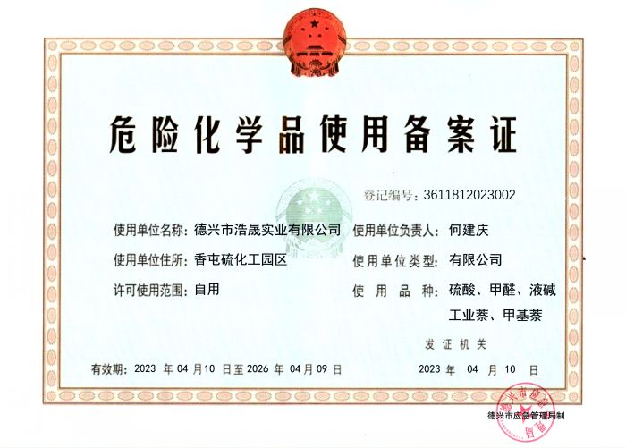危化品使用备案证