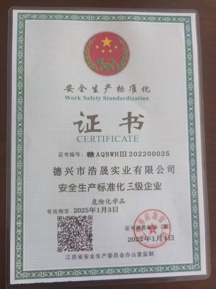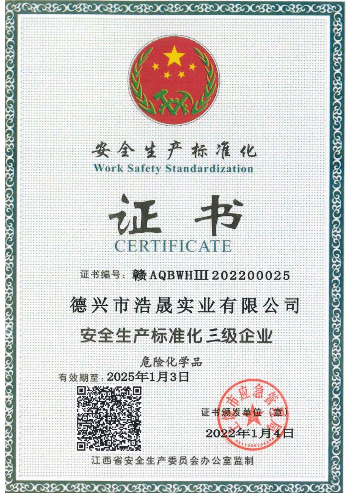 德兴市浩晟实业有限公司三级标准化证书