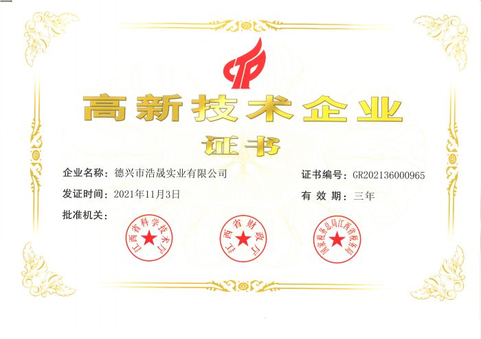 高新技术企业证书
